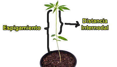 Aún cuando el crecimiento de una planta dependerá en gran medida de su genética, por ejemplo una sativa será más grande que una índica, el espigamiento (crecimiento alto y delgado con pocas ramificaciones o demasiado espacio internodal) se puede generar en cualquier cepa.